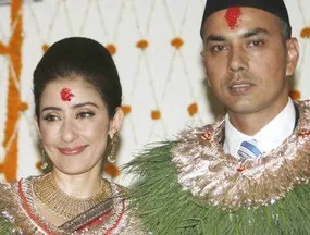 Manisha Koirala poses with her groom Samrat Dahal during their wedding ceremony in Kathmandu on June 18.